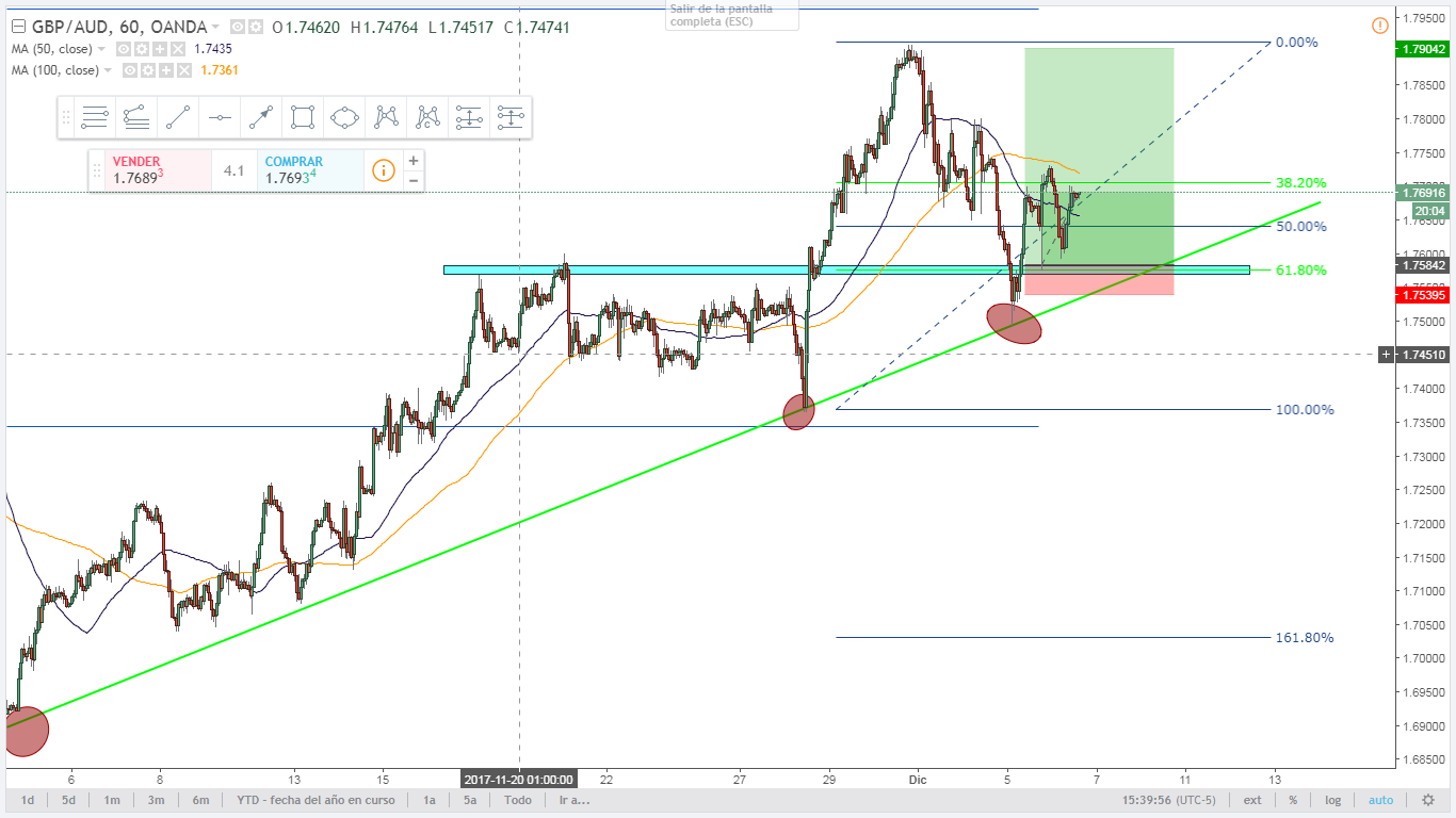 NZD/USD 30 min. La secuencia de impulsos en este par me da pautas para poder buscar compras al corto plazo con objetivos estratégicos en la zona de 0.65764. La formación de bandera que me forma el precio