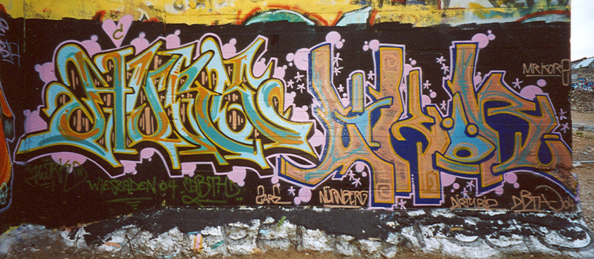Hallo Leute, ich will euch einfach mal ein bisschen was zum Thema Graffiti erzählen. Angefangen hat es bei mir ca 1995, ich kam mit Graffiti über Skateboarding in Kontakt. An den Skateparks konnte man