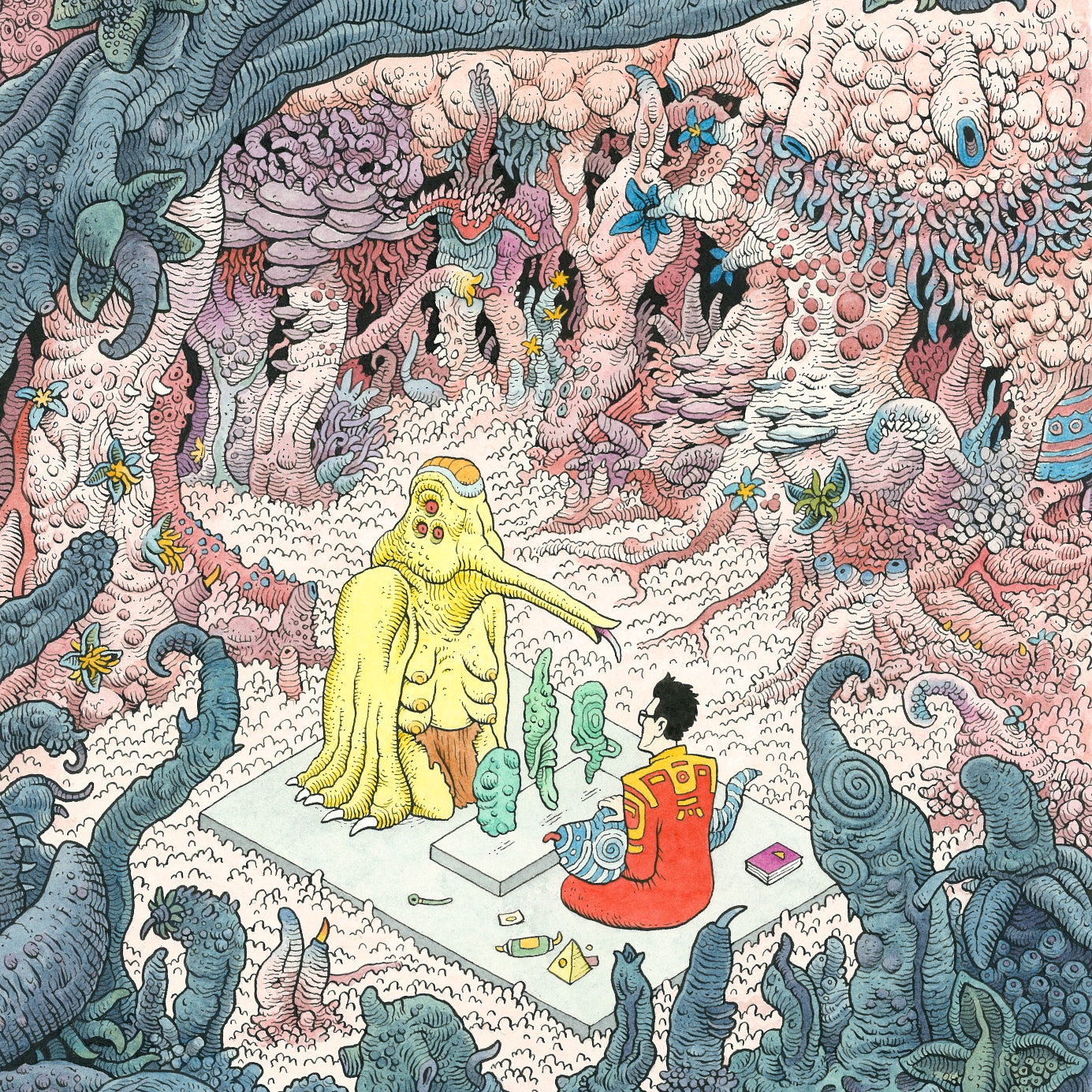 Tim Molloy makes ridiculous apocalyptic psychedelic art mostly in the form of surrealist comic books, paintings and sculpture.
