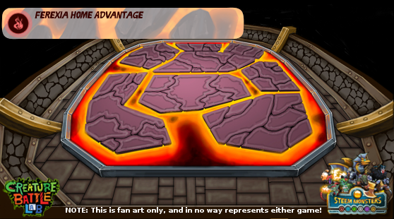 I recently came across some lovely artwork for a game called Creature Battle Lab (CBL), which put me in mind of the various different arena's of SteemMonsters. I immediately made a mashup image, using these arena images from CBL and the characters from SteemMonsters, just to see what it might look like. I think this looks like a whole lot of fun! Also, it put me in mind of the "home advantage" feature that has been mentioned before. What advantage would each Splinter get for fighting in their own homeland? It might be a simple buff (eg. Inspireย for all monsters in the Team) or maybe a debuff against the opponents, like my example above of