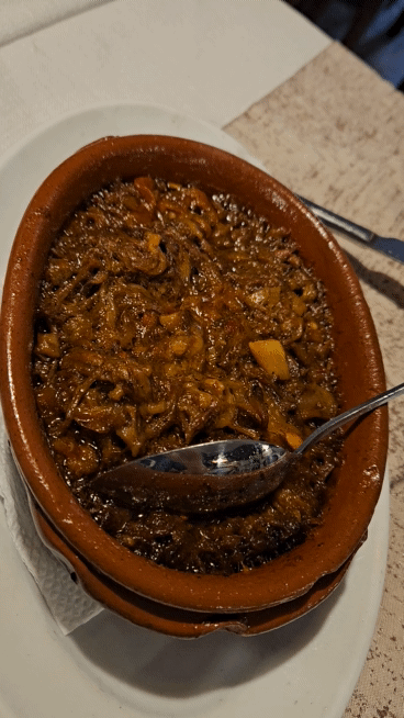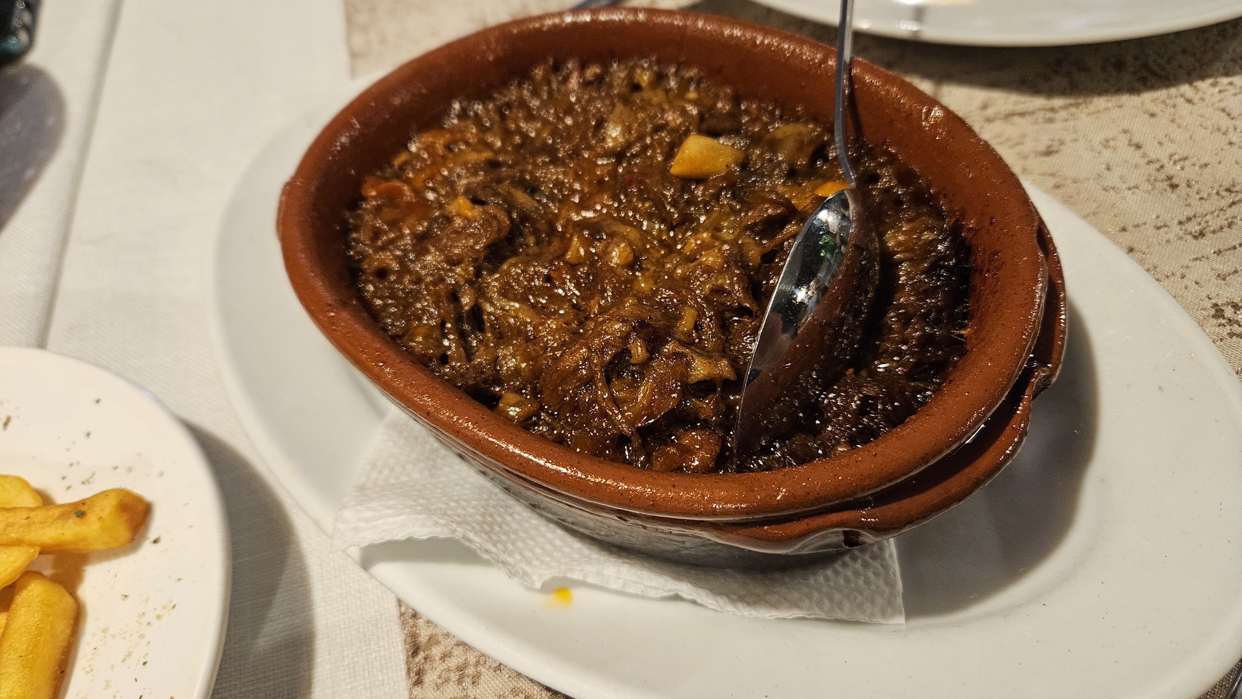 Until they brought me the food, I had no idea what the portion would look like. And when they brought it, in a clay pot, the meat was still simmering, I was delighted. <br />