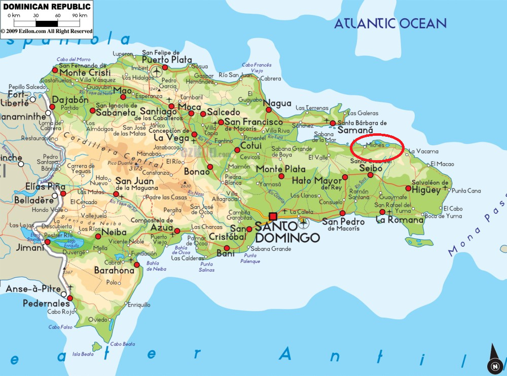 Also, gesagt, getan! Von der Hauptstadt Santo Domingo aus nahm ich eines der vielen Guaguas, die mehrmals täglich in Richtung Nordosten fahren. Die Fahrt ging zuerst der Südküste ostwärts bis nach San Pedro de Macoris und von dort hoch in den Norden über die Berge der Cordillera Oriental bis hinunter in den Küstenort Miches an die Nordostküste des Landes.