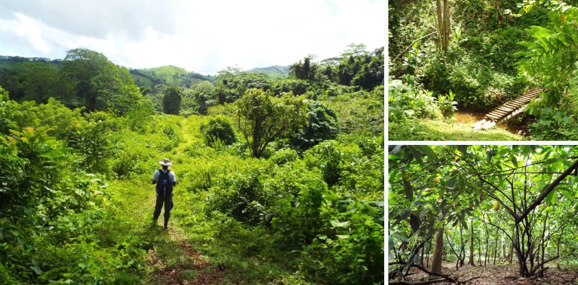 Hier startete also der Wanderweg – wobei Wanderweg? Keine Beschilderung, kein richtiger Weg - aus meiner Sicht nichts. Zum Glück kannte sich Savino gut aus und so stapften wir rund 1.5 Stunden durch den schlammigen Kakaowald bis zu einer grünen Schutzhütte des Umweltministeriums.