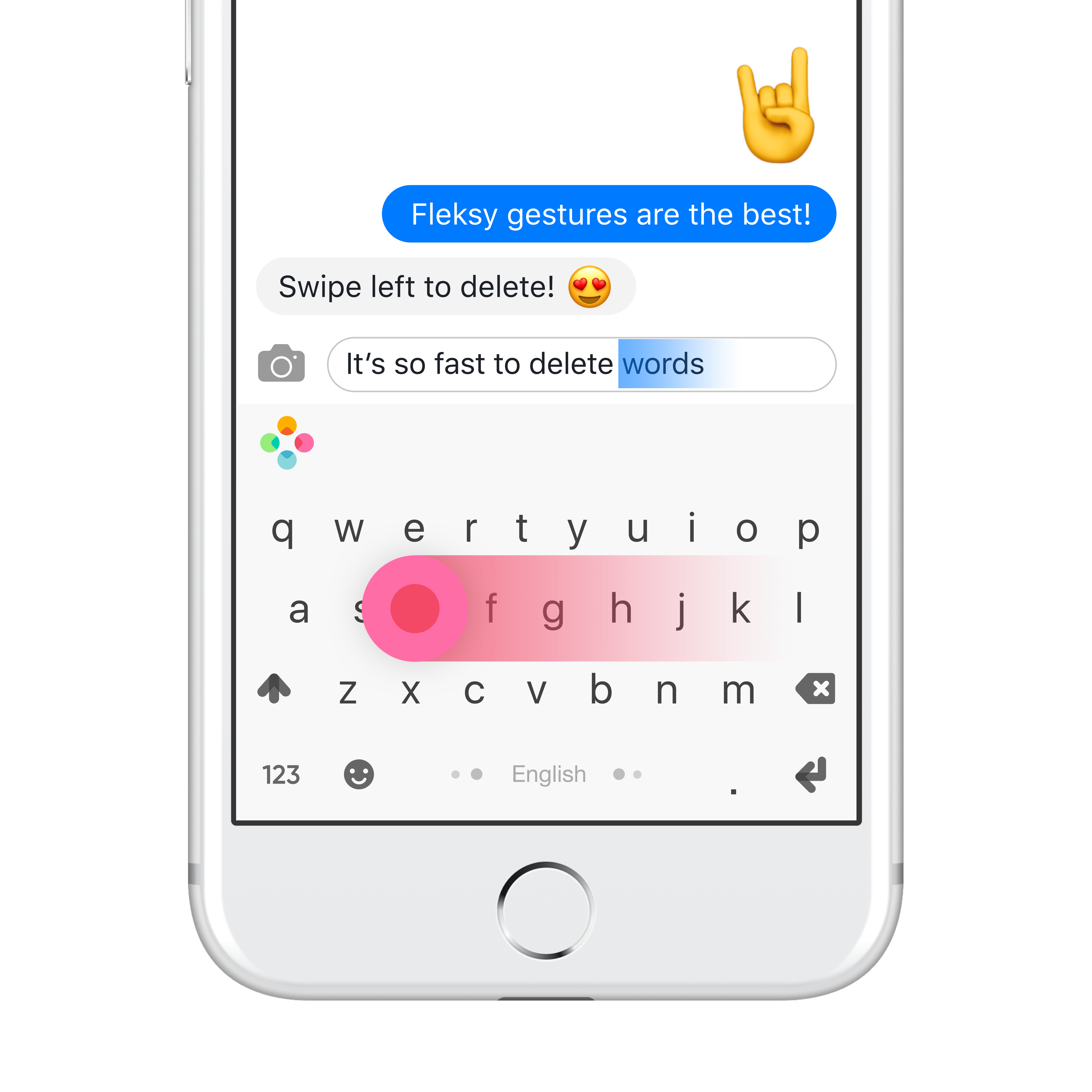 Guiness World Record holder for the fastest keyboard. So fast that you'll type accurately with your eyes closed.! Download it here - http://www.fleksy.com Fleksy_AS_SupportImaginery_0006_quick_word_deletion.png