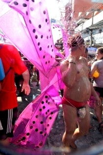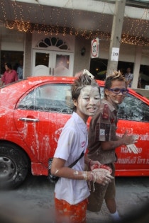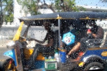 I'm taking a taxi, but I shoot a water gun at the next tuk-tuk.