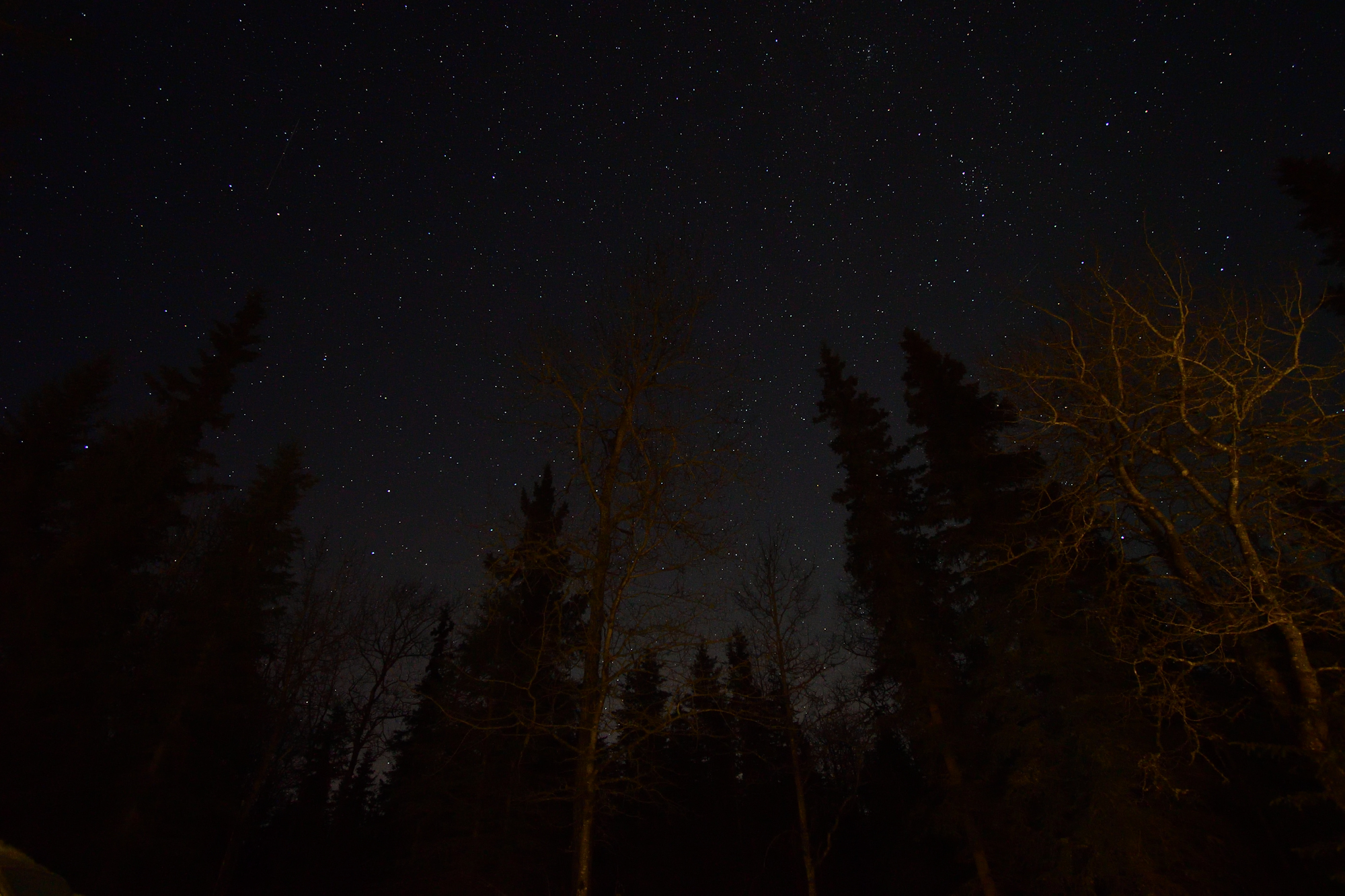 The Big Dipper, right over the group of trees in the driveway that we drive around. Yeah even though it was cold I had to get that shot when I saw it.
