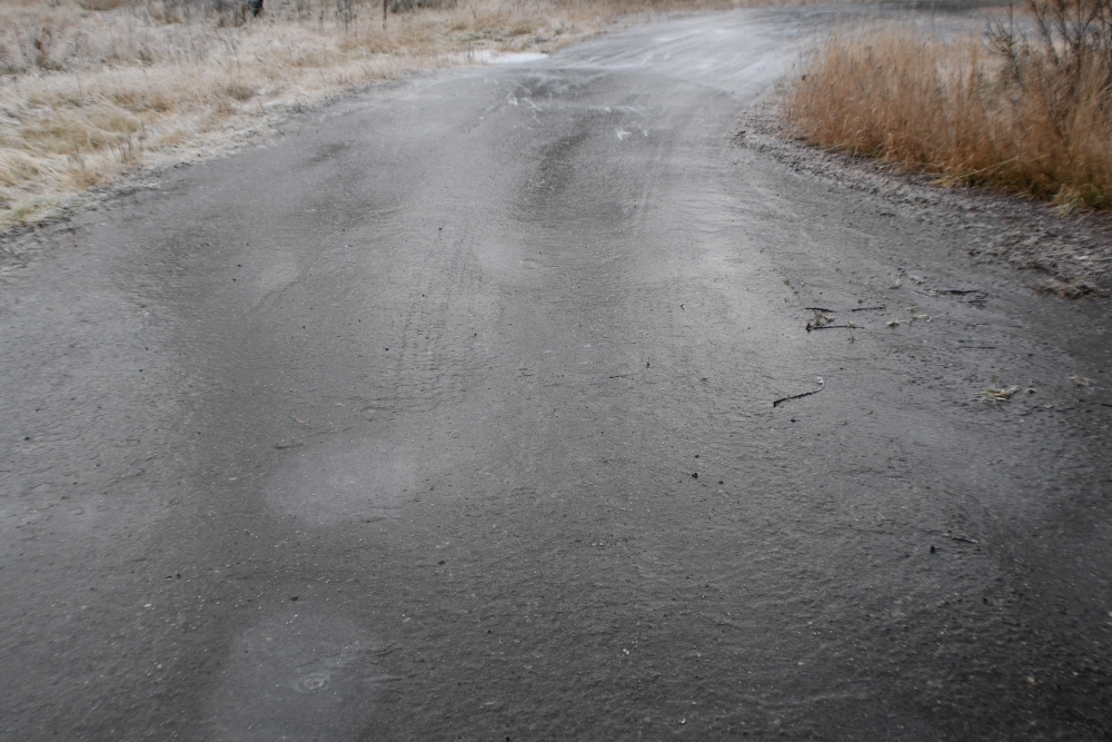 Not a lot of difference in the amount of snow. As a reminder however, that first snow had just gravel and weeds and grass. I did a post on the 5th and here is what is under that fresh un-messed up as of yet snow, I have had no cause to go out anywhere yet).