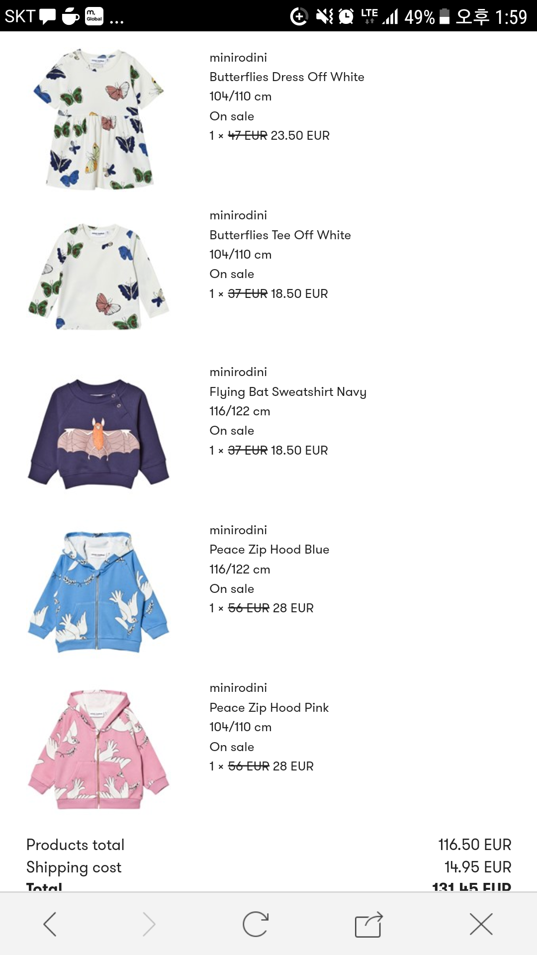 다섯벌 샀는데도 120유로가 안넘었어요(뿌듯..)