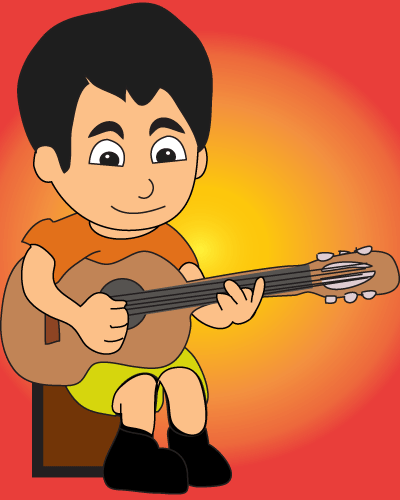 this artwork was created by with just two moves and shows a guitar playing young man. it is fascinating what animation and dynamic can be created with only two images.