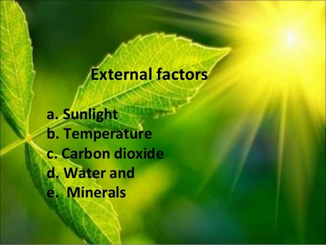 Internal factors consist of heredity, enzymes, and hormones. Meanwhile, external factors, consisting of light intensity, water adequacy, temperature, and minerals.
