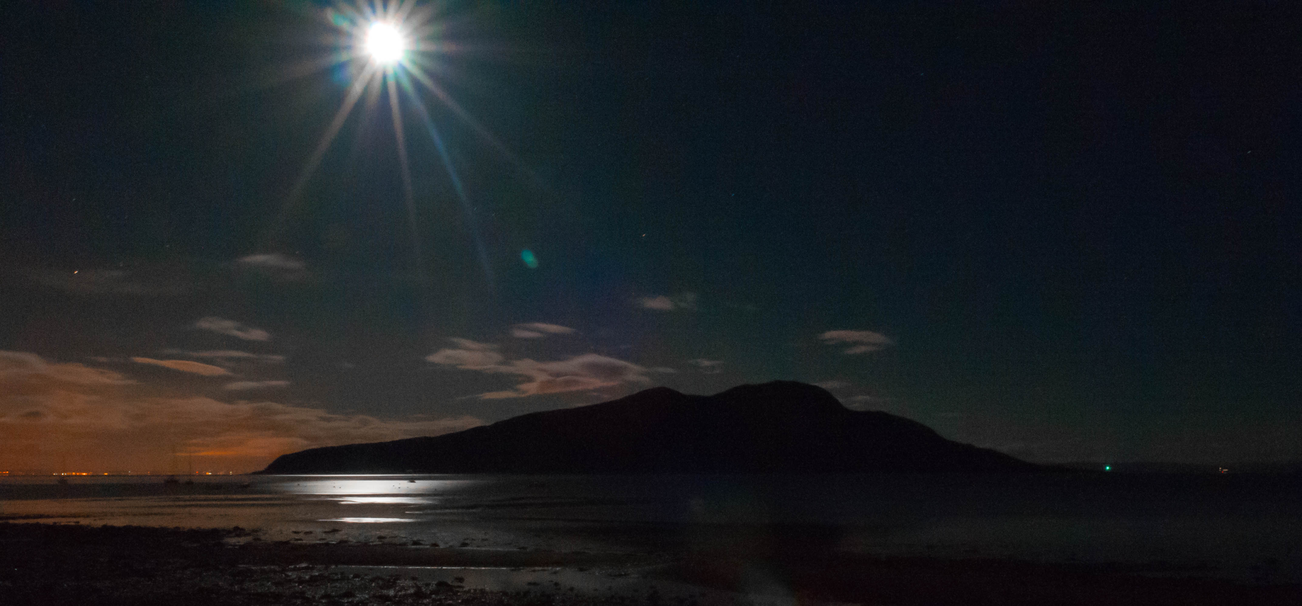 A 30-second exposure of Holy Isle in Lamlash Bay. I love the moonlight in this and the lights on the towns on the mainland across the water.