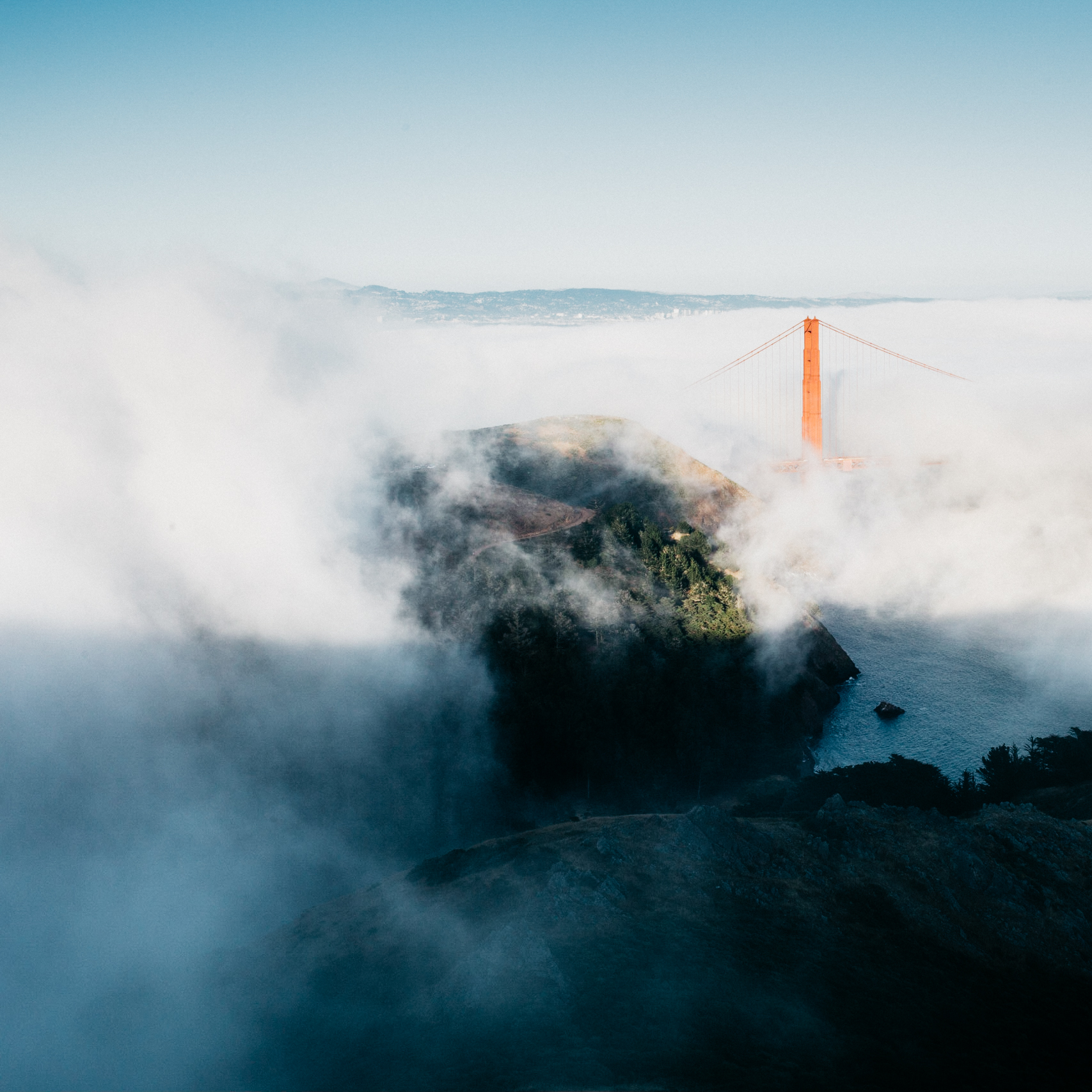 The usual suspect Karl The Fog, submerging the San Francisco Golden Gate Bridge