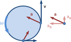 Using polar coordinates (angle θ, radius r) we end up with an angular acceleration: