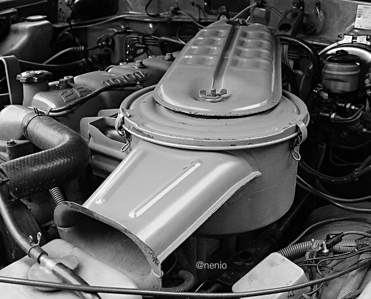 Si se observa bien el entorno donde uno está, siempre se pueden encontrar oportunidades para obtener fotografías interesantes. Como la que hoy muestro de un motor Toyota. Lo que llama la atención es el inusual color amarillo con el que está pintado y el uso de las diagonales en la composición de la imagen. Vale la pena reseñar la bien cuidado que está el motor.