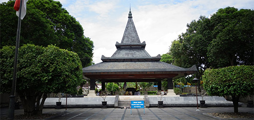 The architectural "Joglo" dominates the tomb. It is in East Javanese style and combined with Gateway of Bentar. Beside the main building formed cover grave house of ‘Bung Karno’, this graveyard complx also completed with support building that is; Gapura Agung (The Great Gate), Mosque, and hall; which make the visitor feel comfortable to pilgrim in this location. There is also the complement building, consist of the grave manager house, public relax place, park area, and park. The impression is as great as the first president himself when he was still alive.