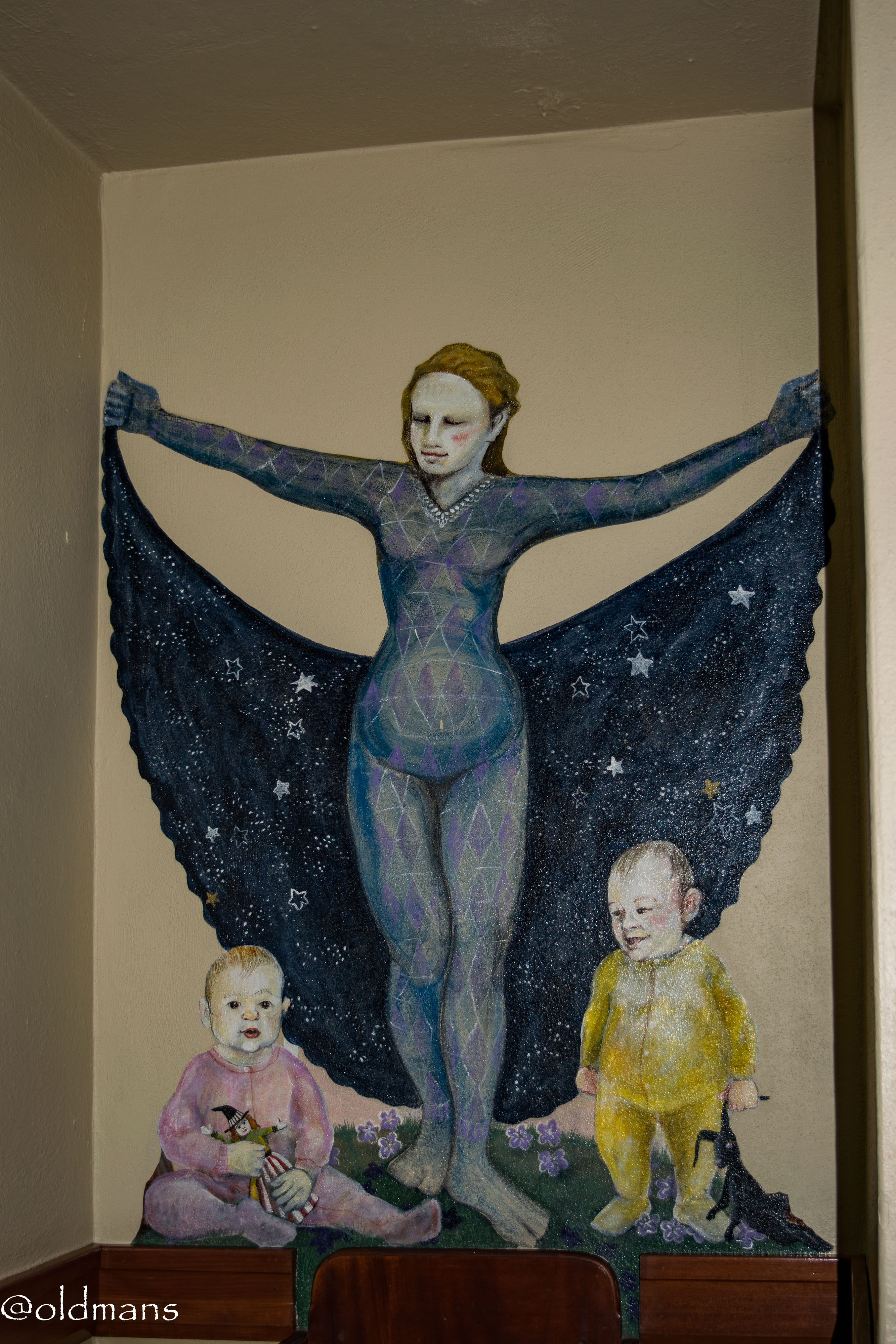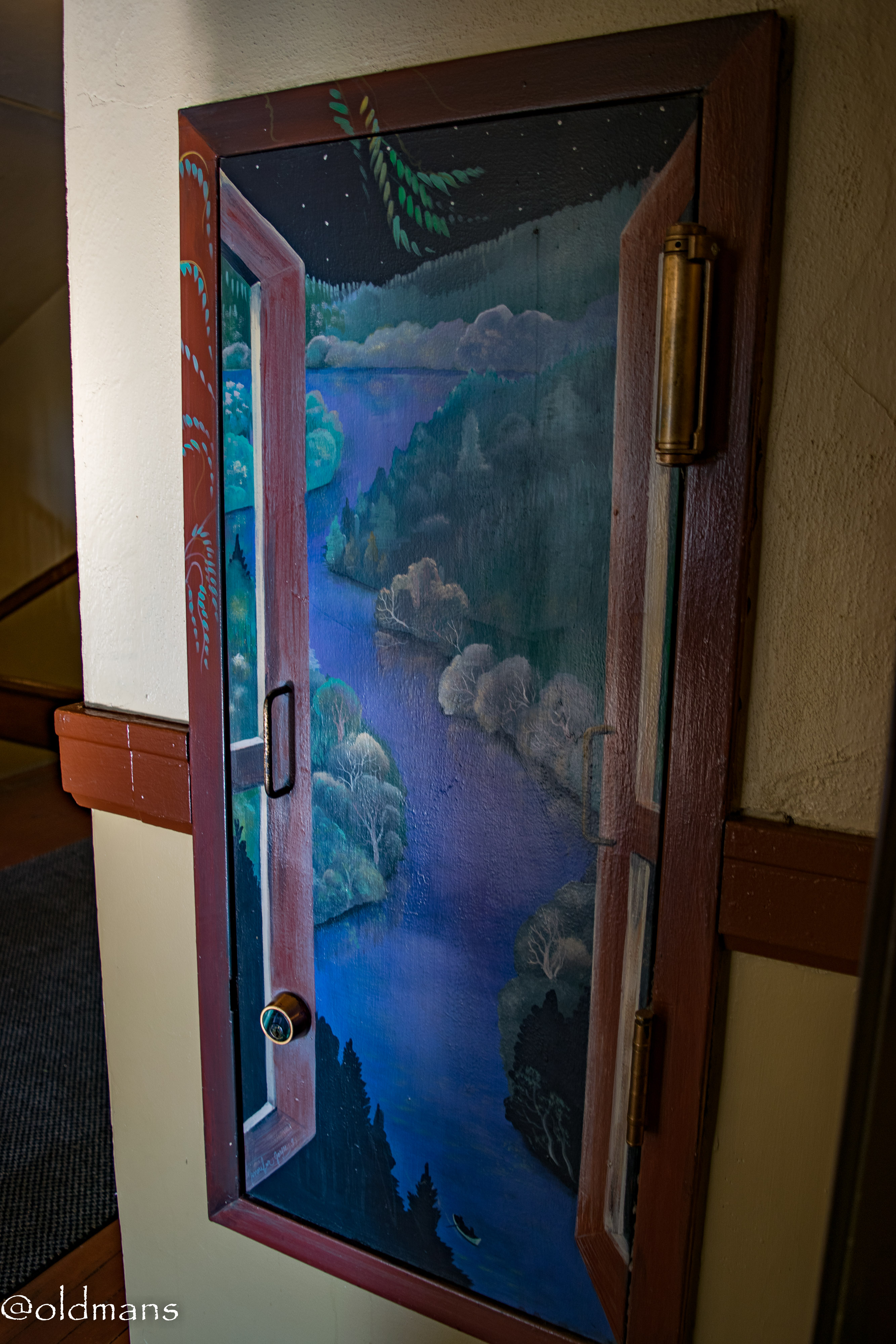 I like the way they incorporated the existing handle and lock on the door as part of the painting.